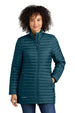 Designed with traditional quilt lines, this insulated full-zip is built for warmth and weather-resistant performance. Features include full-length interior storm flap with chin guard, exposed, molded zippers with Eddie Bauer logo pulls, elastic cuffs, zippered hand pockets and a slight drop tail hem. Includes a decoration access pocket. Packs into zippered left hand pocket. Longer length with a double zipper. Contrast Eddie Bauer heat transfer logo on right hem. Made of 100% polyester ripstop and 5.4-ounce, 100% polyester blown fill. PU coating on back of shell. Durable water-repellent (DWR) finish.